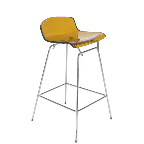 Banqueta com assento em acrílico 10mm várias cores, base em aço inoxidável polido ou em aço polido cromado.