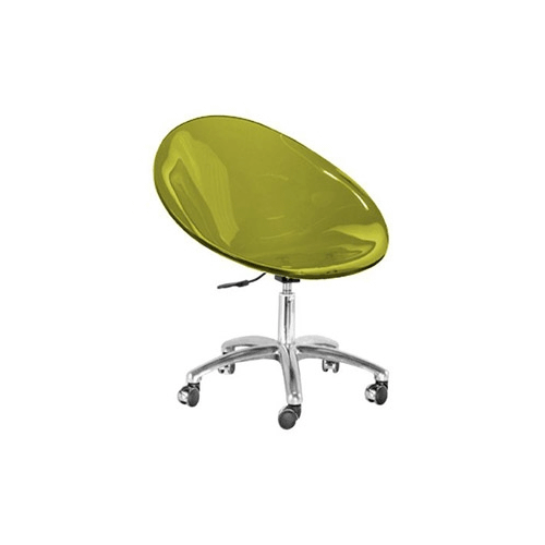 Assento em acrílico 12 mm em diversas cores, base em alumínio injetado polido com pistão regulador a gás e rodízios.