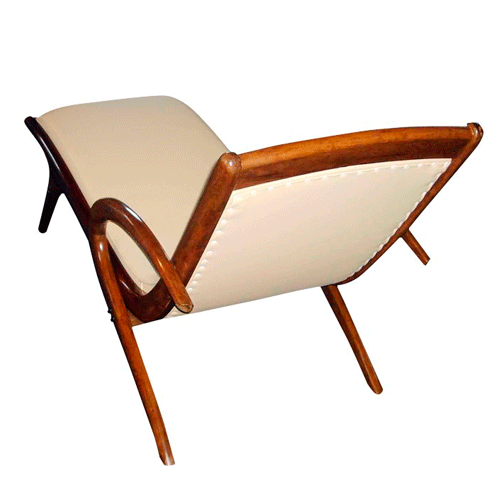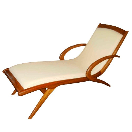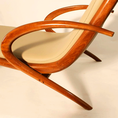 Estrutura em madeira ipê lustrada e assento revestido com tecido, couro ecológico ou natural.