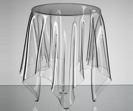 Mesa Lateral fabricada em policarbonato. Disponível nas cores: Vermelho e Cristal.