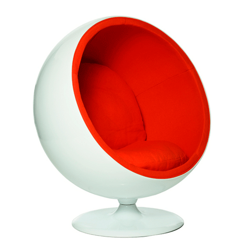 A Ball Chair é criação do designer finlandês Eero Aarnio, usando uma das mais simples formas geométricas – a esfera. Trecho de entrevista concedida por Eero Aarnio: “A idéia da cadeira sempre foi muito óbvia. Tinhamos nos mudado para nossa primeira casa, e eu tinha começado minha carreira como freelance. Tínhamos uma boa casa, mas nenhuma cadeira a altura, e por isso decidi fazer uma cadeira, mas não uma convencional, queria criar algo diferente. Após criar alguns desenhos percebi que a forma tinha se tornado tão simples que era somente uma esfera. Aí desenhei toda a escala na parede e determinei a altura, e demais dimensões.”
